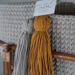 El fondo del cesto es de madera de pino de primera calidad de 6mm de espesor. La pintura blanca utilizada para acabar el fondo cumple con los requisitos de PN-EN 71-2 y PN-EN 71-3 «Seguridad de los juguetes».